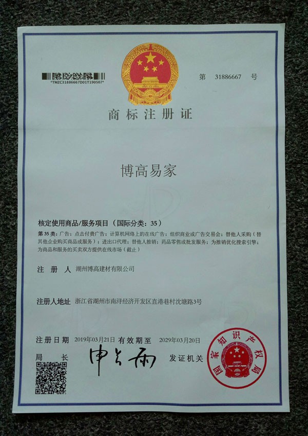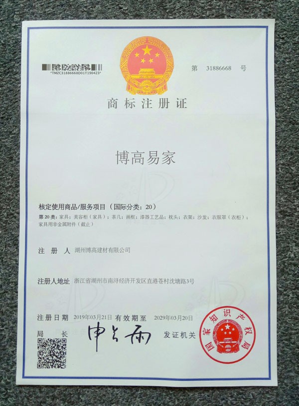博高易家商標注冊證01