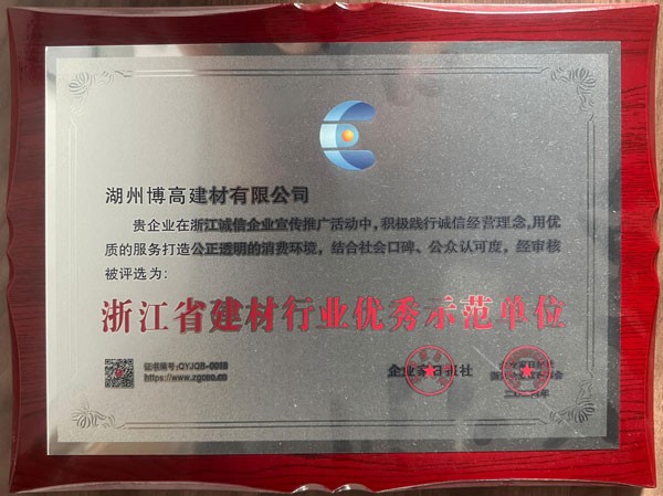 浙江省建材行業(yè)優(yōu)秀示范單位