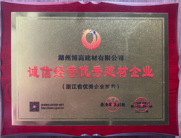 浙江省誠信經(jīng)營優(yōu)秀建材企業(yè)