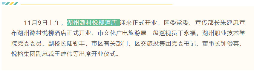 儀式上,與會人員共同參觀了湖州潞村悅柳酒店。